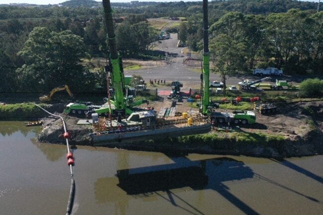 The project was awarded in two stages and incorporating access road and sliplane construction from public roads, detailed traffic control and movement and coordinated haulage and lifting of barges.